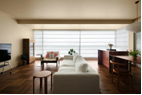 客厅空间设计主调为统一的杏色,覆盖墙面与天花,奠定简洁大气的风格。地面采用深色木地板与浅色拼接,形成视觉上的跳跃与平衡。同色系的软装搭配,如亚麻窗帘与沙发,通过材质的粗细纹理对比,在细节中提升了空间设计的温度,最终营造出一种让人心境平和的居住氛围。