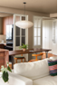 餐厅采用开放式布局,与客厅融为一体。多功能木质岛台是空间的核心,其延伸台面可作为餐桌。白色推拉门灵活分隔了厨房与餐厅,而环形台面设计则提升了操作效率。整个空间设计在满足多样化生活需求的同时,也实现了功能与美感的统一。