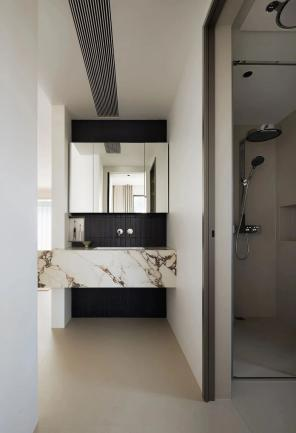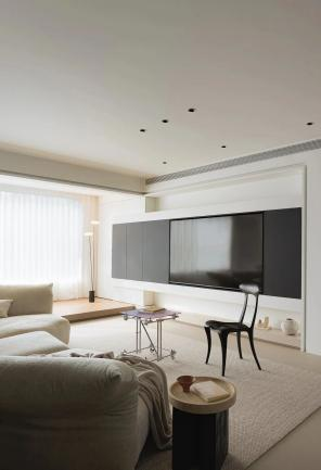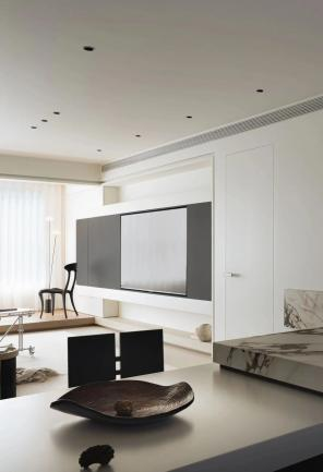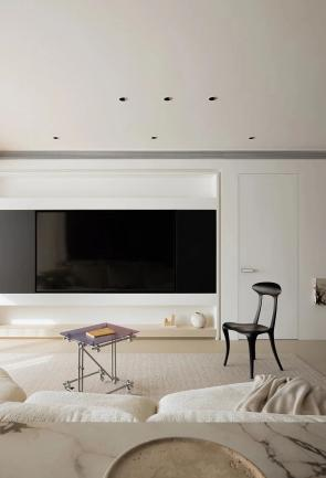 本案采用现代简约风格的硬装设计。整个空间以黑白灰三色为主调,借助简洁的线条搭配与几何形态,营造出一种清新利落的视觉感受。设计师秉持“少即是多”的设计理念,通过摒弃冗余的装饰,突显空间硬装设计的纯粹性与功能性。