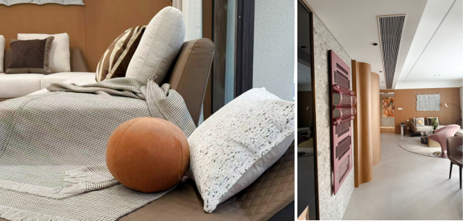 步入空间,原木饰面与米灰基调构筑的硬装基底,瞬间带来温润通透的感官体验。