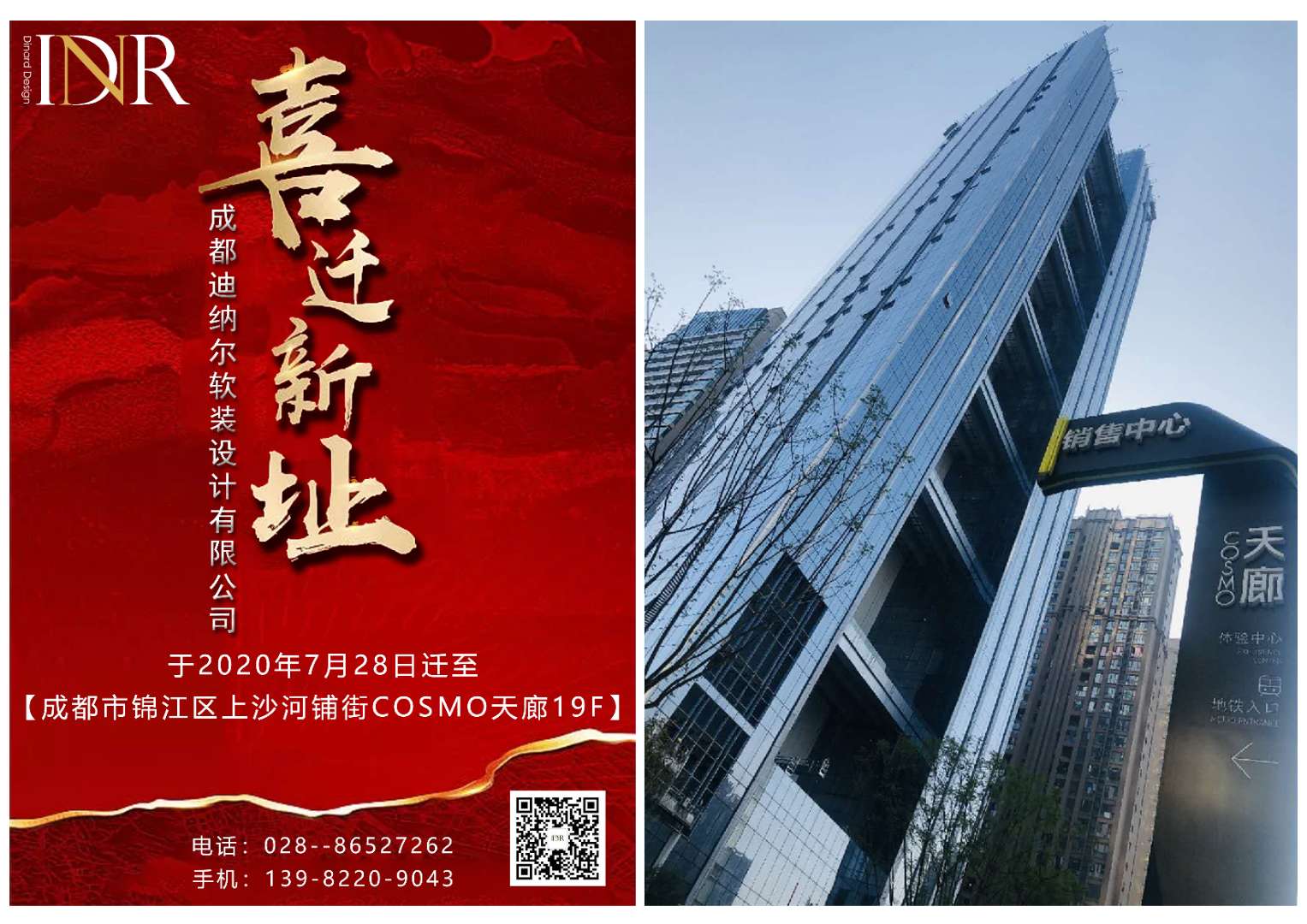 敬告迪纳尔软装的客户、朋友、同事,感谢您们11年来的支持与厚爱,让我们迪纳尔软装不断成长,不断进步;在这11年艰难的、快乐的岁月里,正是有您们的帮助,才让迪纳尔软装乘风破浪,勇敢坚守着自己的理念;7月28日我司迁至上沙河铺路COSMO天廊19楼办公,愿我们友谊长存,事业蒸蒸日上!