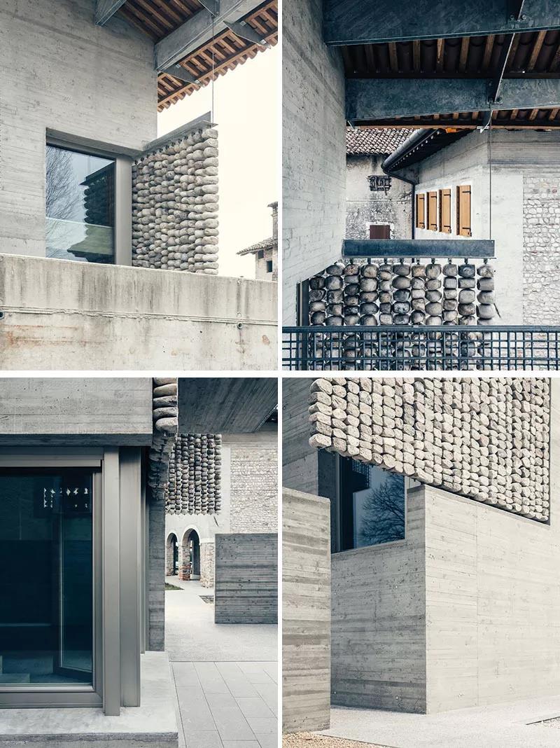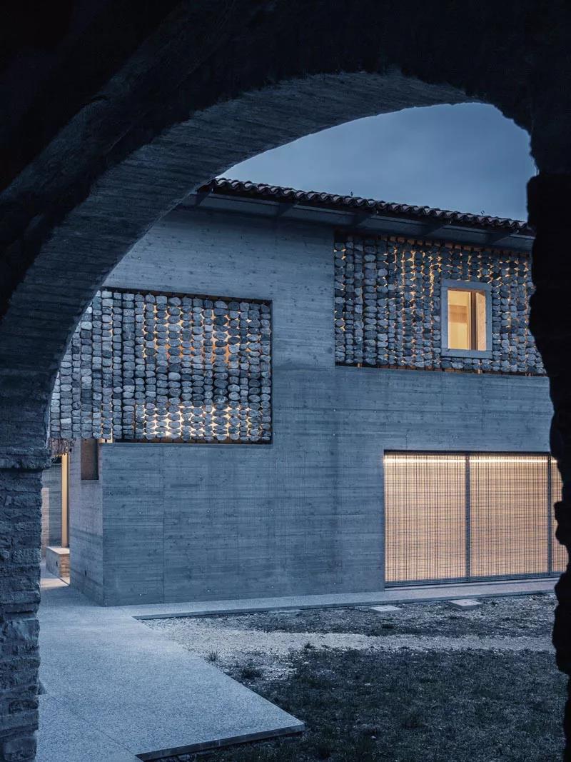 “石头窗帘” 给单调的建筑增添了别样的趣味。 尤其是当阳光照过来, 窗帘孔缝的光影投射到室内, 仿佛天然的装饰