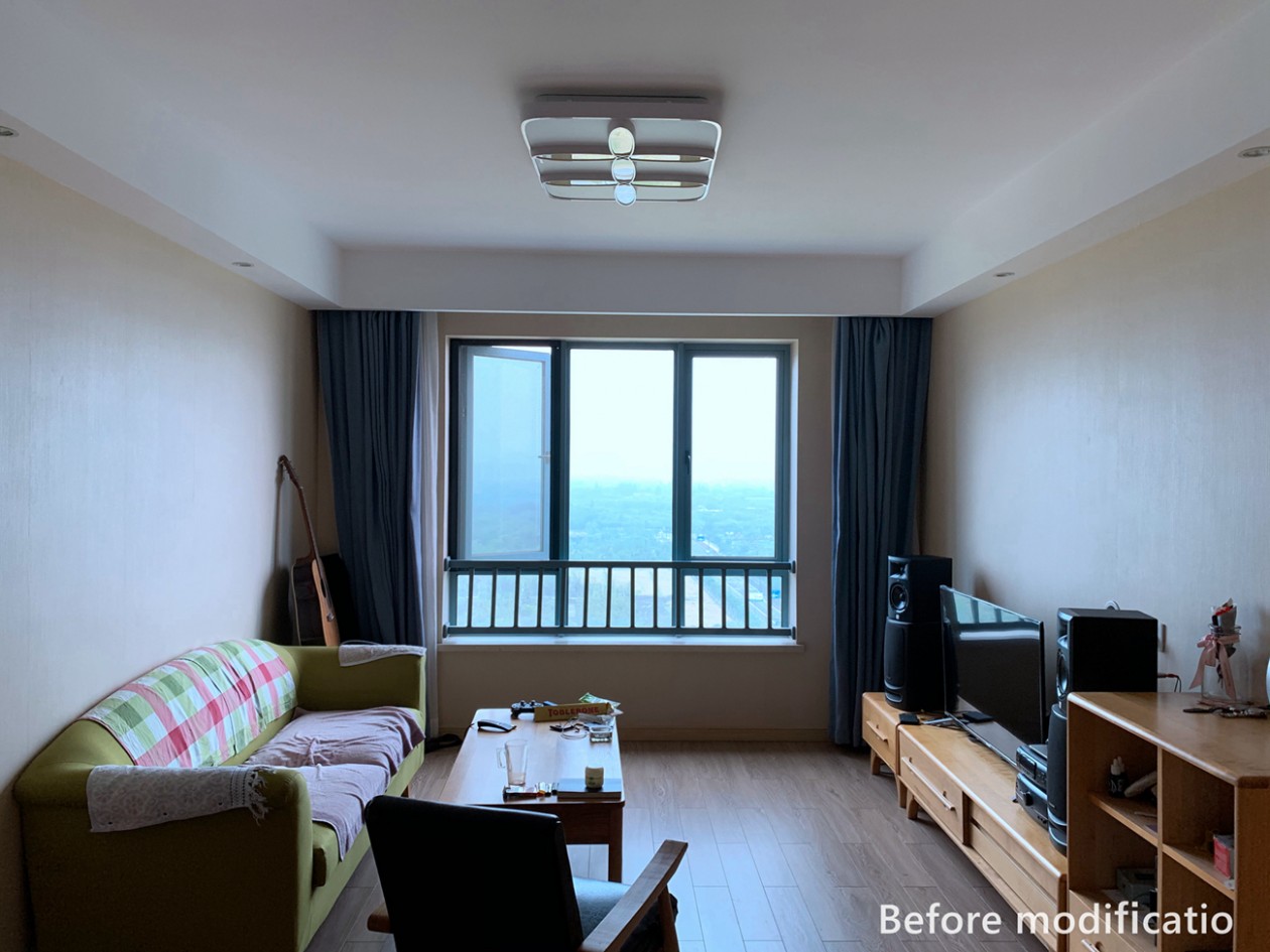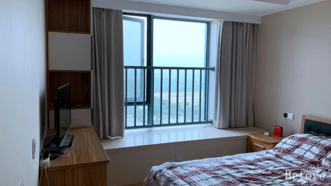 于是,软装设计的痕迹被抹去,大大的窗纳自然光线入内,整个空间轻盈而通透。