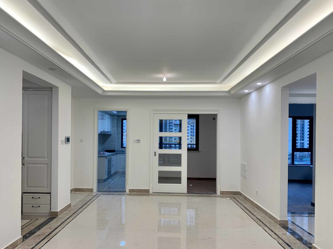 在原始基础上,我们将踢脚线拆除,并重组吊顶部分。将原来的休闲阳台纳入室内,增加使用面积,也增加了储物空间。可以用来存放宠物用品及各类杂物,平时也是猫咪的活动区域。