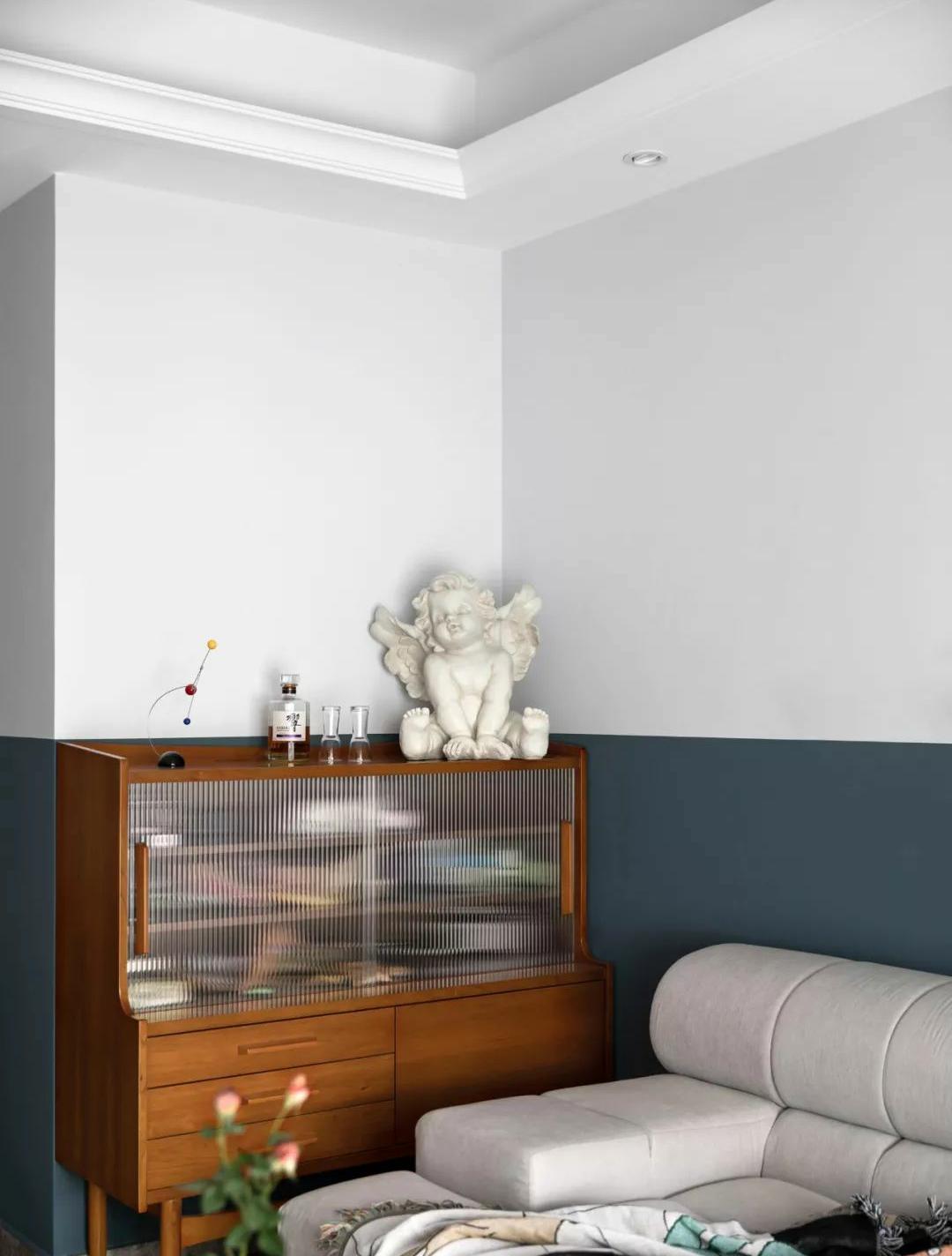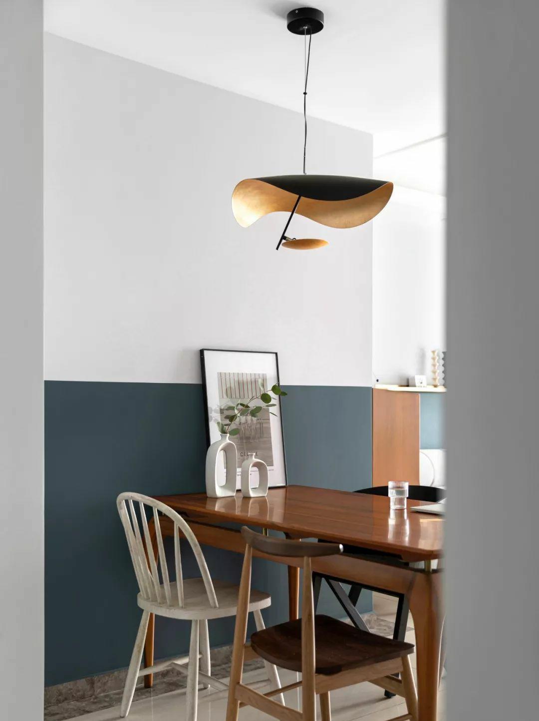 大面积的墙面分色使空间设计更富有层次感,营造出宽敞舒适的家,体现主人的个性与品位。