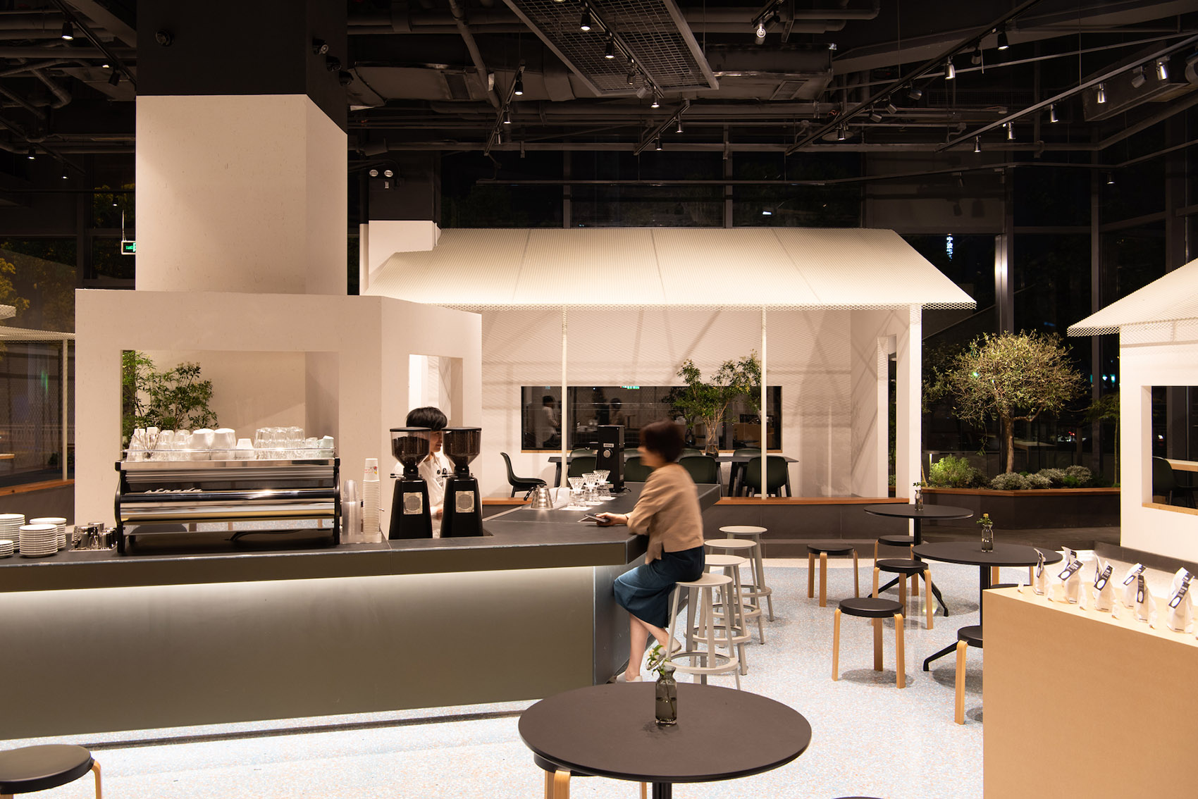 Seesaw Coffee,这间起于上海的咖啡品牌,在苏州这座城市该如何实现在地化?地处空间局促的现代商场,又该怎样将庞大的园林体系于一个紧凑的室内空间作出巧妙的转换?