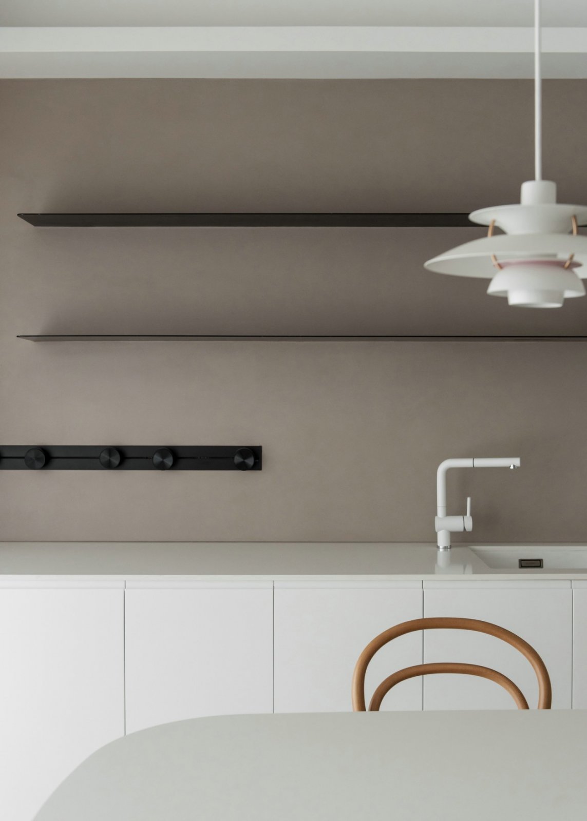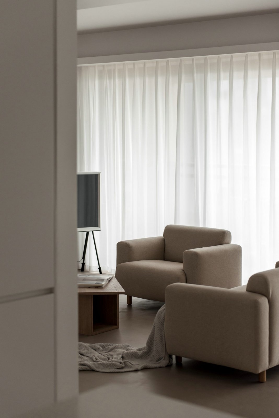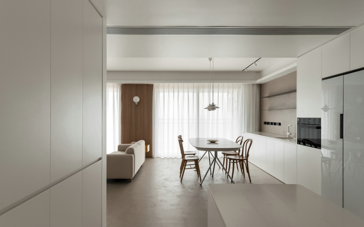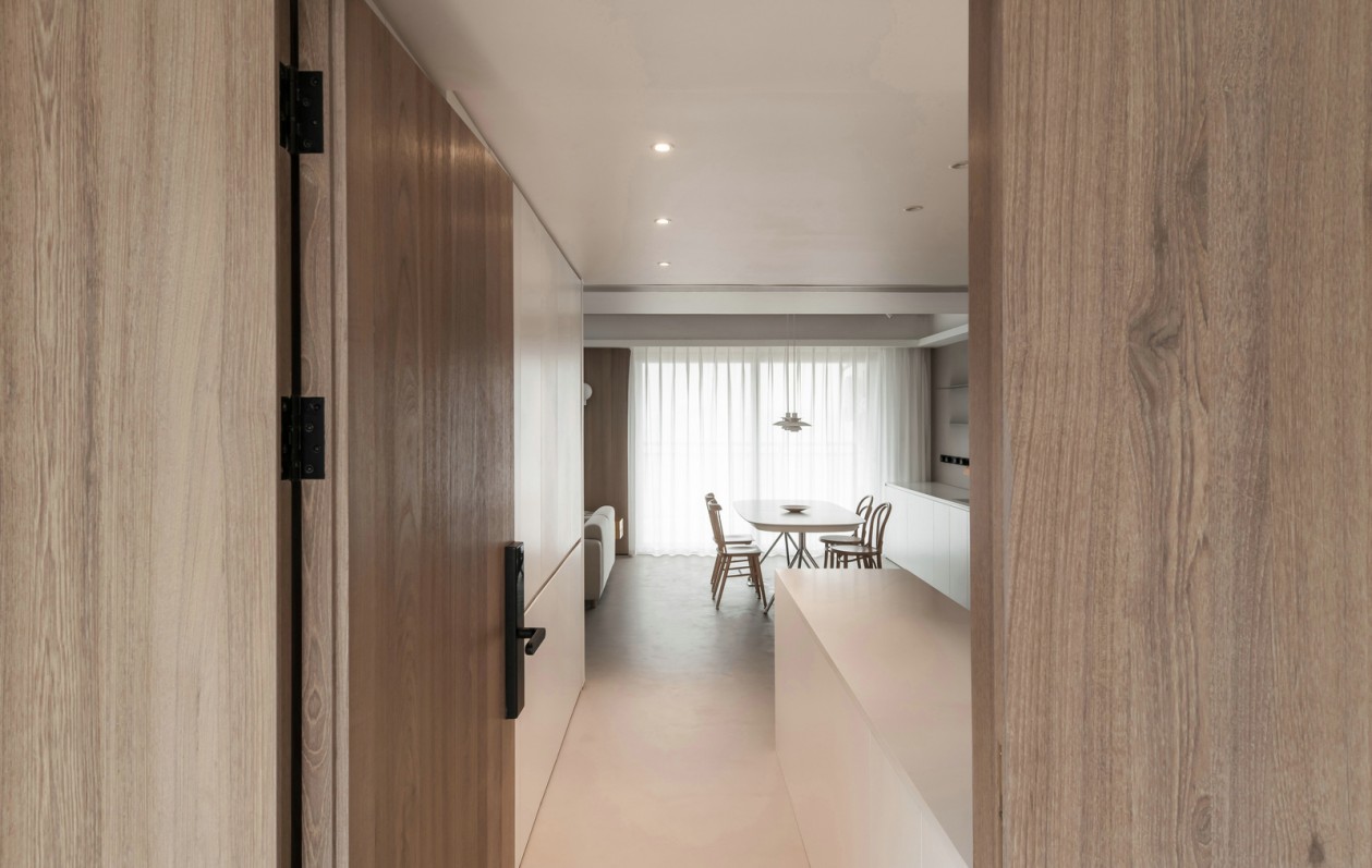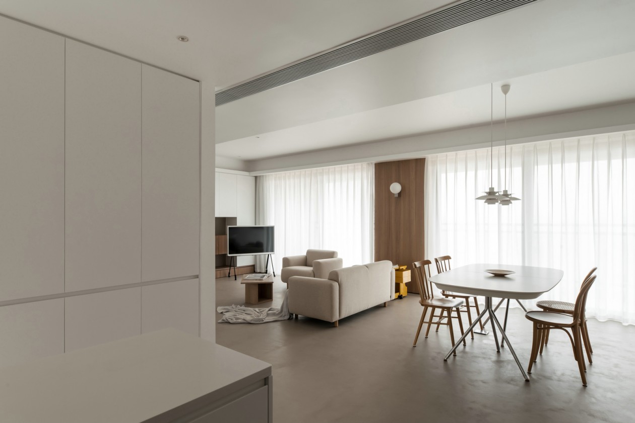 在营造这个极简空间时更注重温暖舒适,一体无缝的地面展现出简单而不失格调的生活态度。