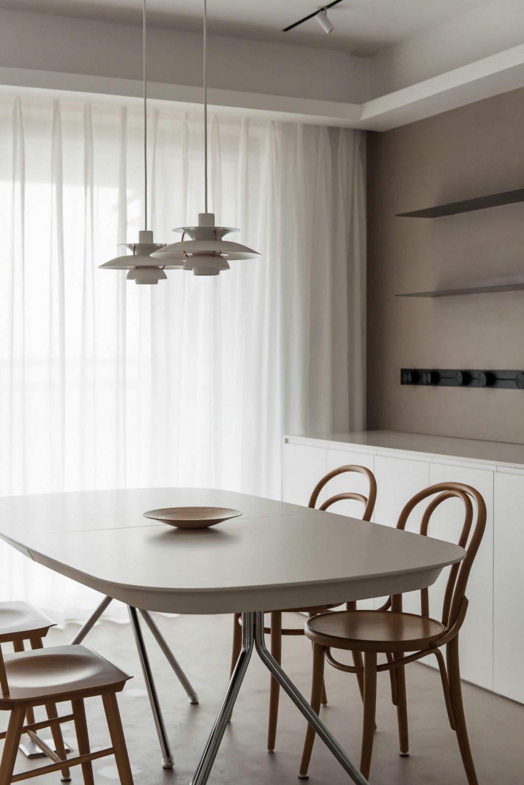 餐桌选用了可以伸缩的多人位,可根据用餐人数调节长度,多功能使用在不同场景下自如切换