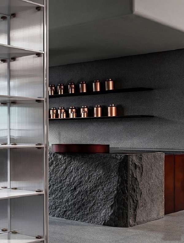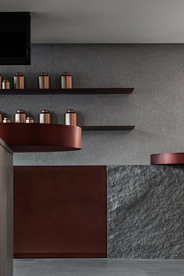 在整个项目当中,材质的运用遵循空间自然的调性出发,却不再停留于形式的展现和细节的追问,而更代表了大益茶对于本案的定位及诉求——一个有底蕴、有底气,却更轻盈的茶空间。