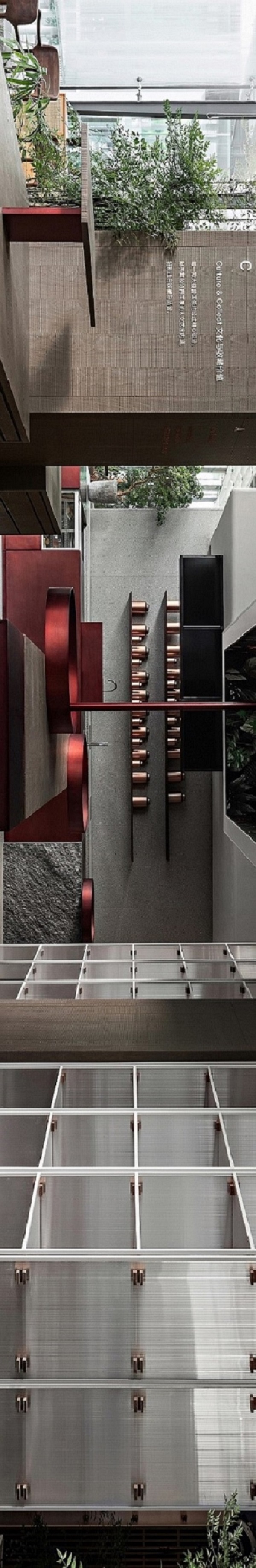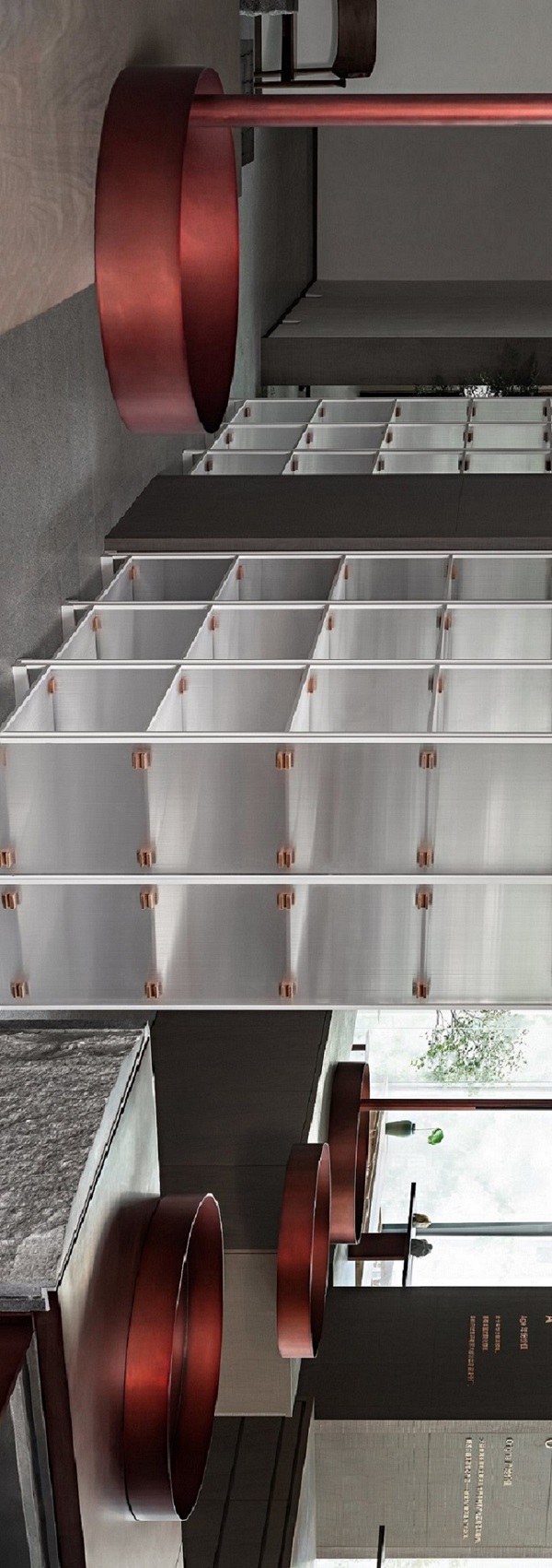 一方面,空间又多采用了阳光板、铜板、玻璃等各式各样简单而现代的介质,构成了空间秩序和线条感的起伏。