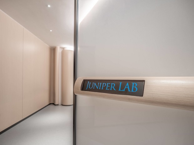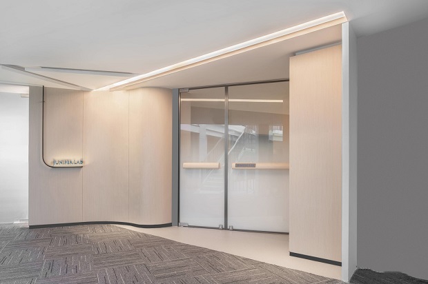 以杜松果实爲出发点,提取果实外形堆栈形成流动的弧线为元素贯穿连接空间,增加空间的变化和柔软感,打破狭长的局面,传递给人安全感,满足柔和理性的功能模块。