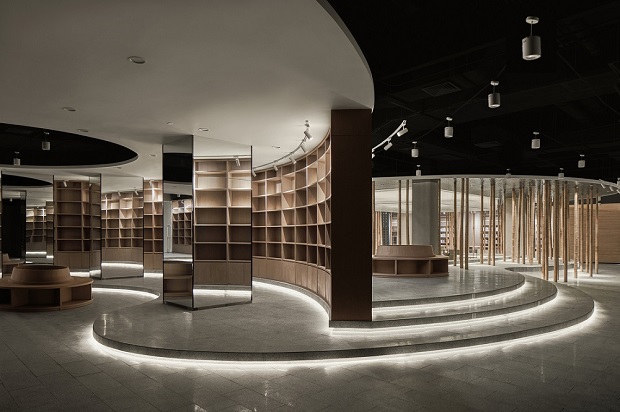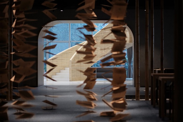 本案是位于绍兴的中关村绍兴水木湾区科学园的一个书店,设计师将传统中式园林意境融入室内,营造了充满古典美学氛围的室内空间。