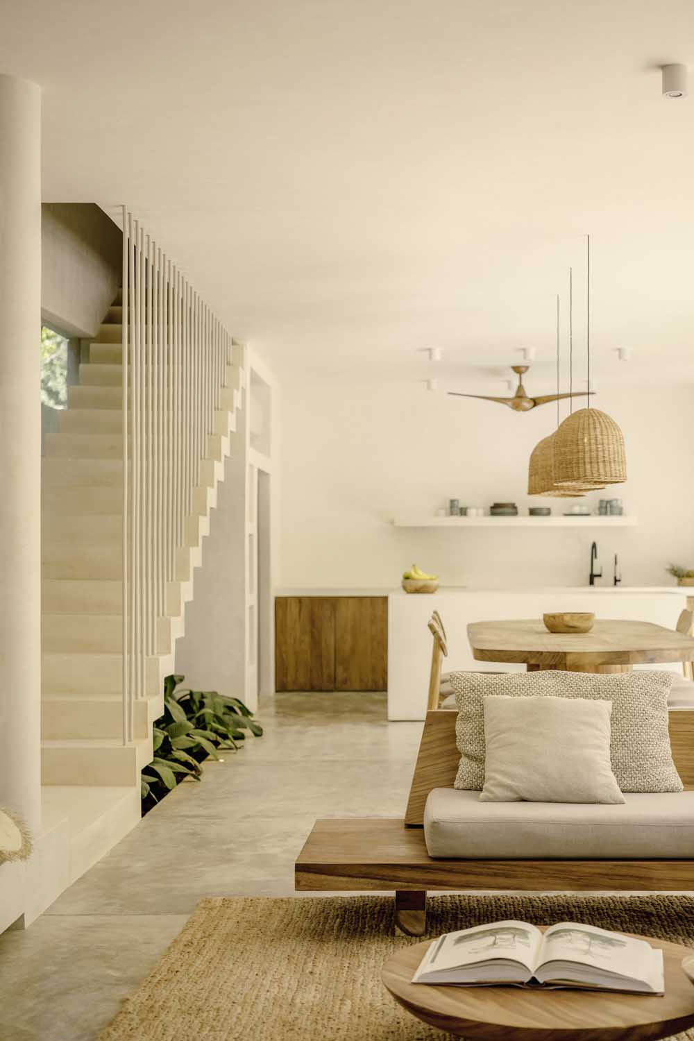 收获与浪漫电影布景相匹配的共鸣,进一步用定制细木工加以装饰,这些细木工是建筑师与尤卡坦工匠合作设计的。