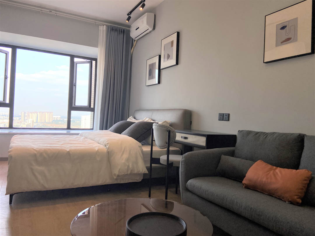 该项目受业主委托,从整体空间设计到硬装施工、软装搭配、家电配置的全托型服务。公寓位于繁华热闹的成都468与三圣花乡交汇处,设计师从业主有限的预算和用途出发,以闹中取静,简装而不减配为创作构思,打造一个受年轻人喜爱的极简风酒店式公寓,小憩、出租两相宜。