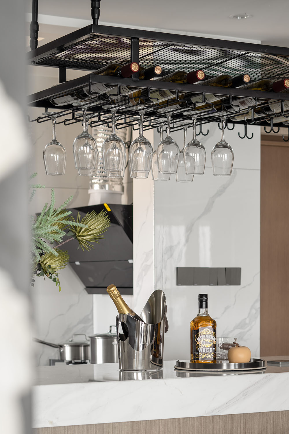 前卫的餐厨一体岛台设计,大大节约了使用空间,多人同时下厨,烹饪乐趣更大。