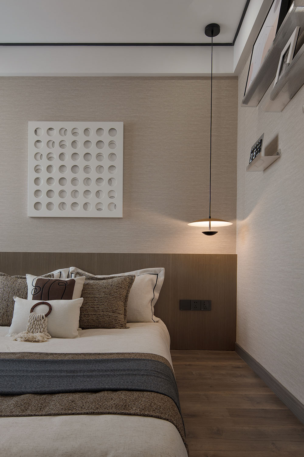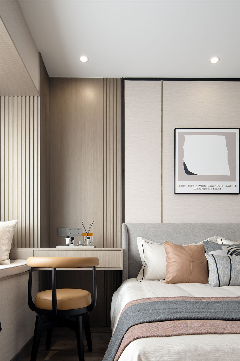 主卧整体设计并不复杂,但每一处都是惊喜,室外四季变化,室内的朝朝暮暮,对应着有情绪、有起伏的生活气息,不刻意勾勒,反而大气优雅,从容坦然。